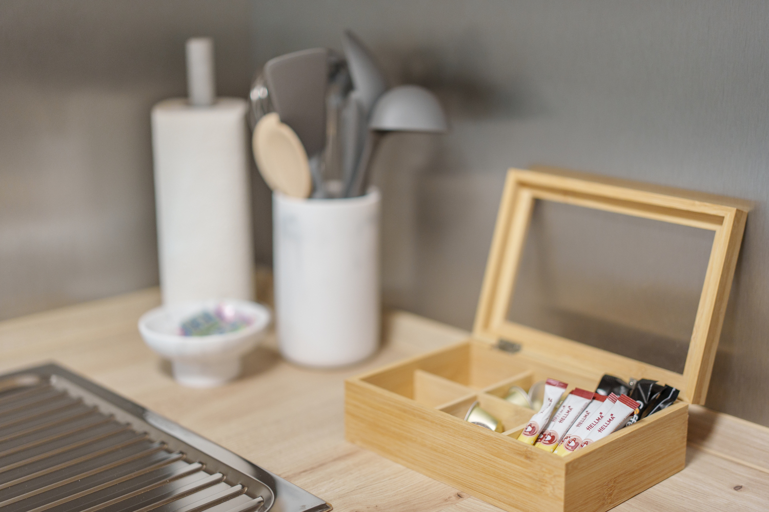 Die moderne Küche ist komplett ausgestattet – perfekt, um gemeinsam zu kochen und den Tag bei einem leckeren Frühstück oder Abendessen ausklingen zu lassen. Eine Nespresso-Maschine sorgt für den perfekten Start in den Tag.